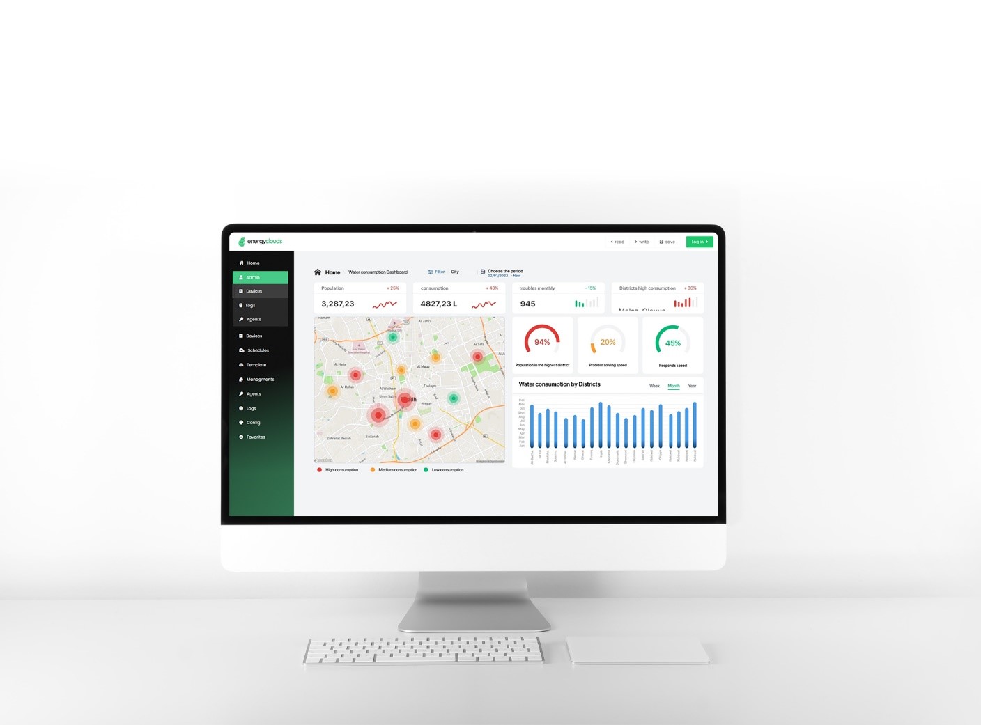 - Comprehensive Control: Streamlines the management of electricity, gas, and water and provides a unified view and control of all utility systems, enhancing operational efficiency and customer service.