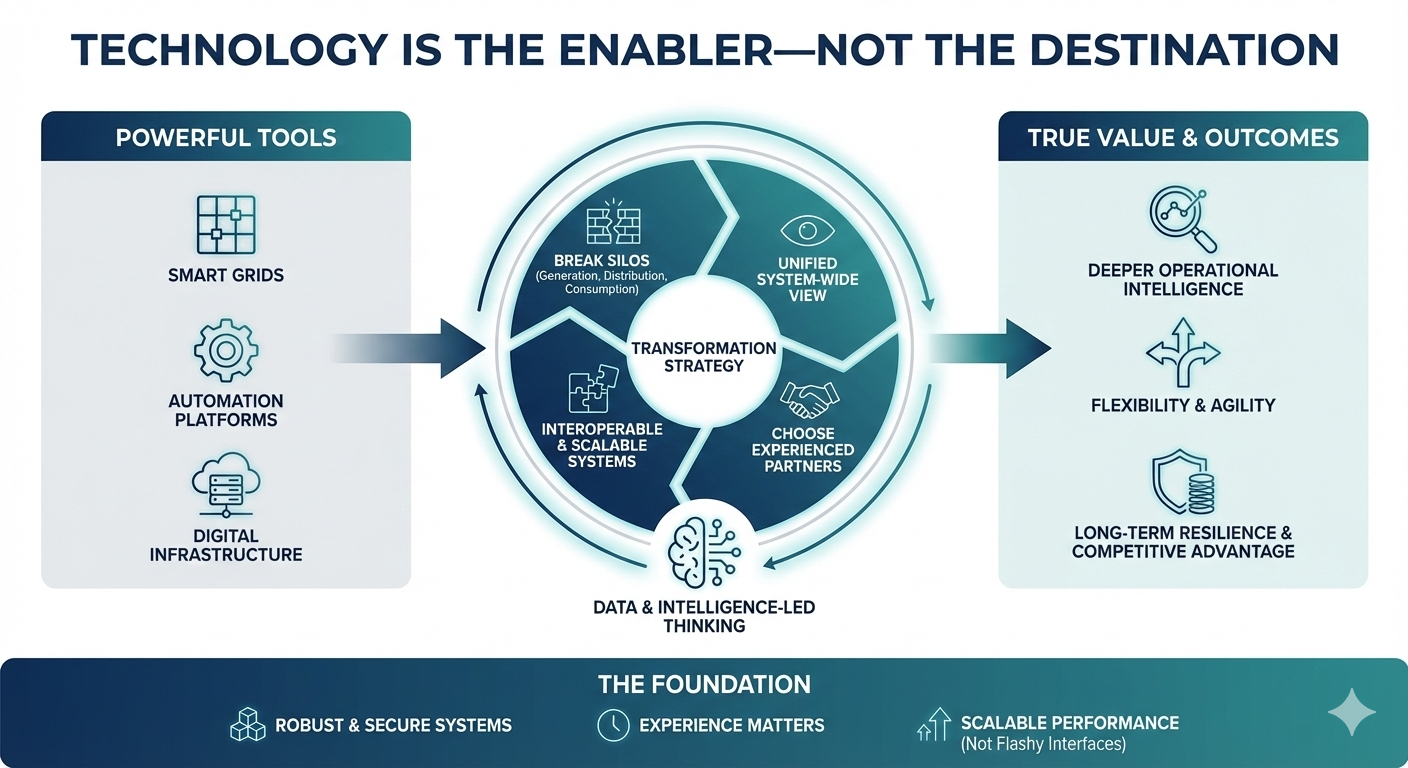 Smart grids, automation platforms, and digital infrastructure are undeniably powerful tools, but their true value lies in how effectively utilities integrate them across the entire energy value
