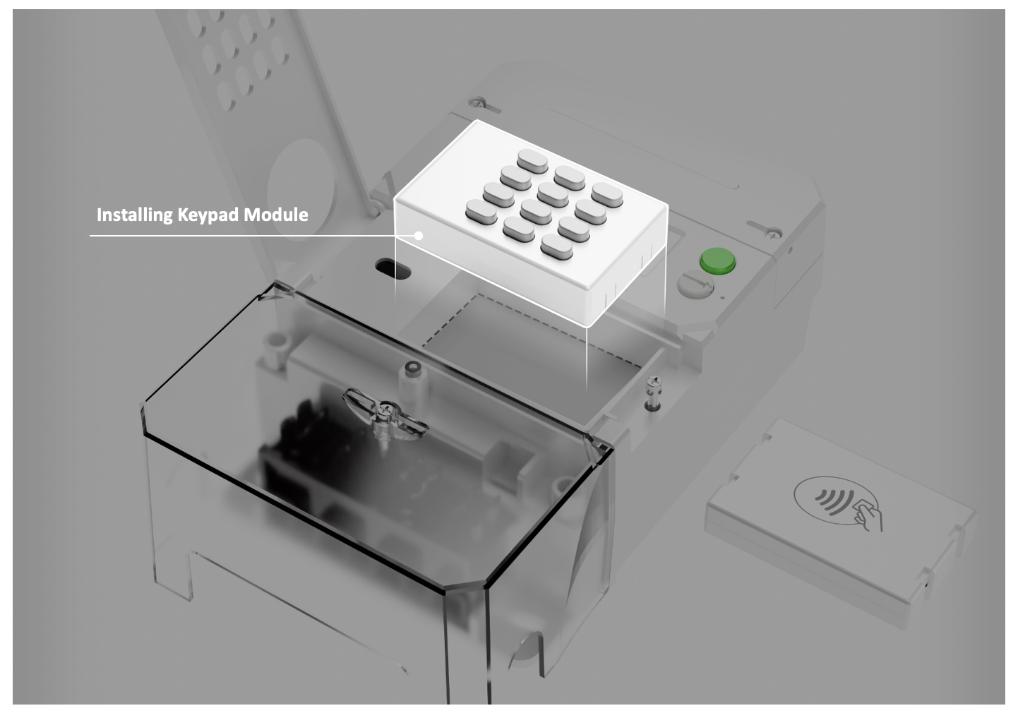It features a plug-in input module, supporting either a keypad or Near Field Communication(NFC) technology for user interaction and data input.