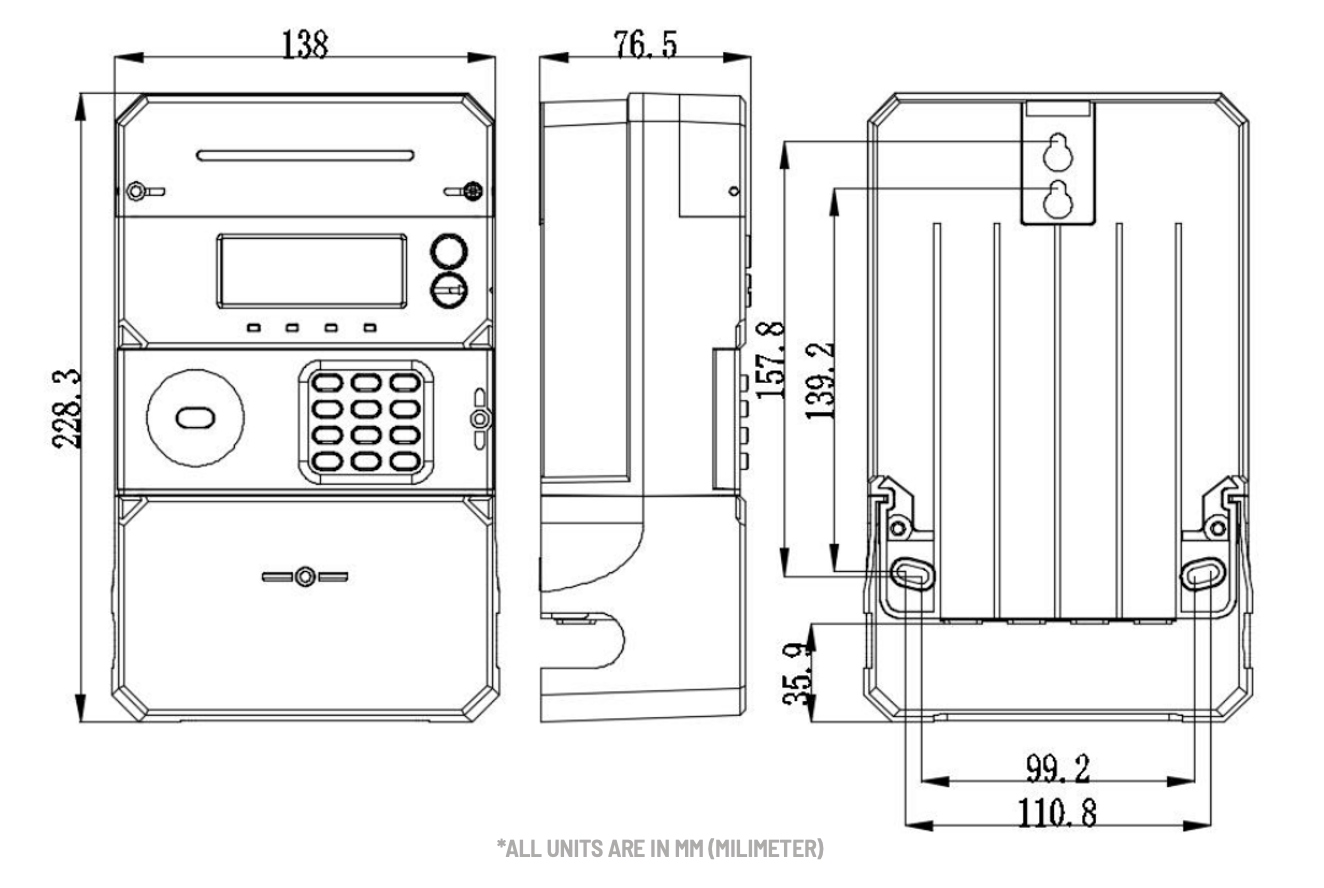 The wiring diagram is laser printed on the terminal cover of the meter. This provides users with clear guidance on how to connect the meter according to their specific requirements. The Material used for the Microcontroller Unit (MCU)enclosure has good dielectric and mechanical strength with the minimum thickness of 2.0mm, ensuring durability and robustness. The material used in the MCU enclosure complies with the IEC 60695-2-11 standard, which involves the glow wire test. This standard assesses the fire hazard of electrical equipment by exposing it to a simulated ignition source. These specifications reflect a focus on safety, durability, and compliance with industry standards for the materials used in the construction of the smart electricity meter. The inclusion of the wiring diagram on the terminal cover makes the installation process user friendly and efficient, allowing customers to follow clear instructions for proper connection.