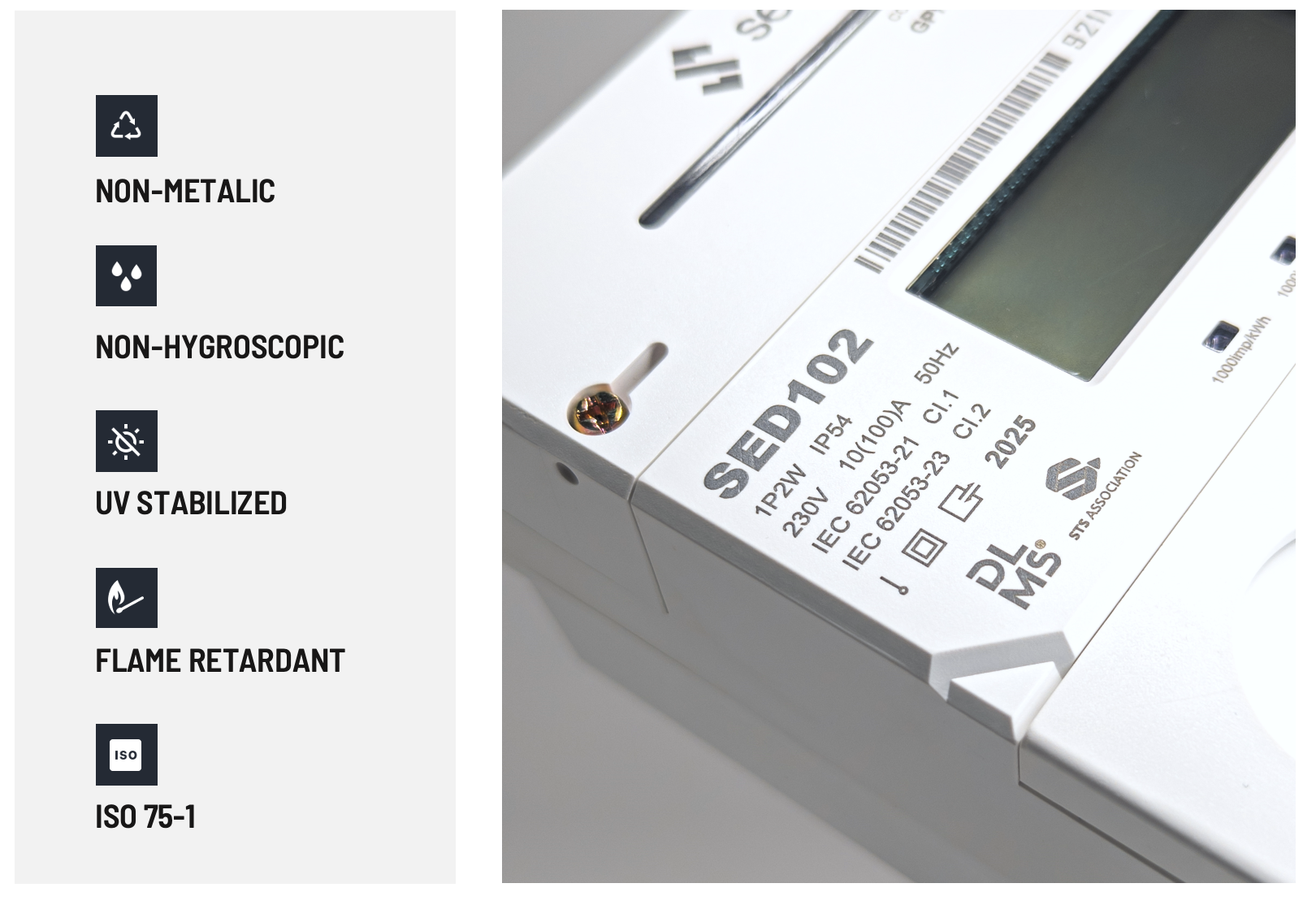 The meter has a high level of accuracy for active energy measurement, complying with Class 1standards as per IEC 62053-21.